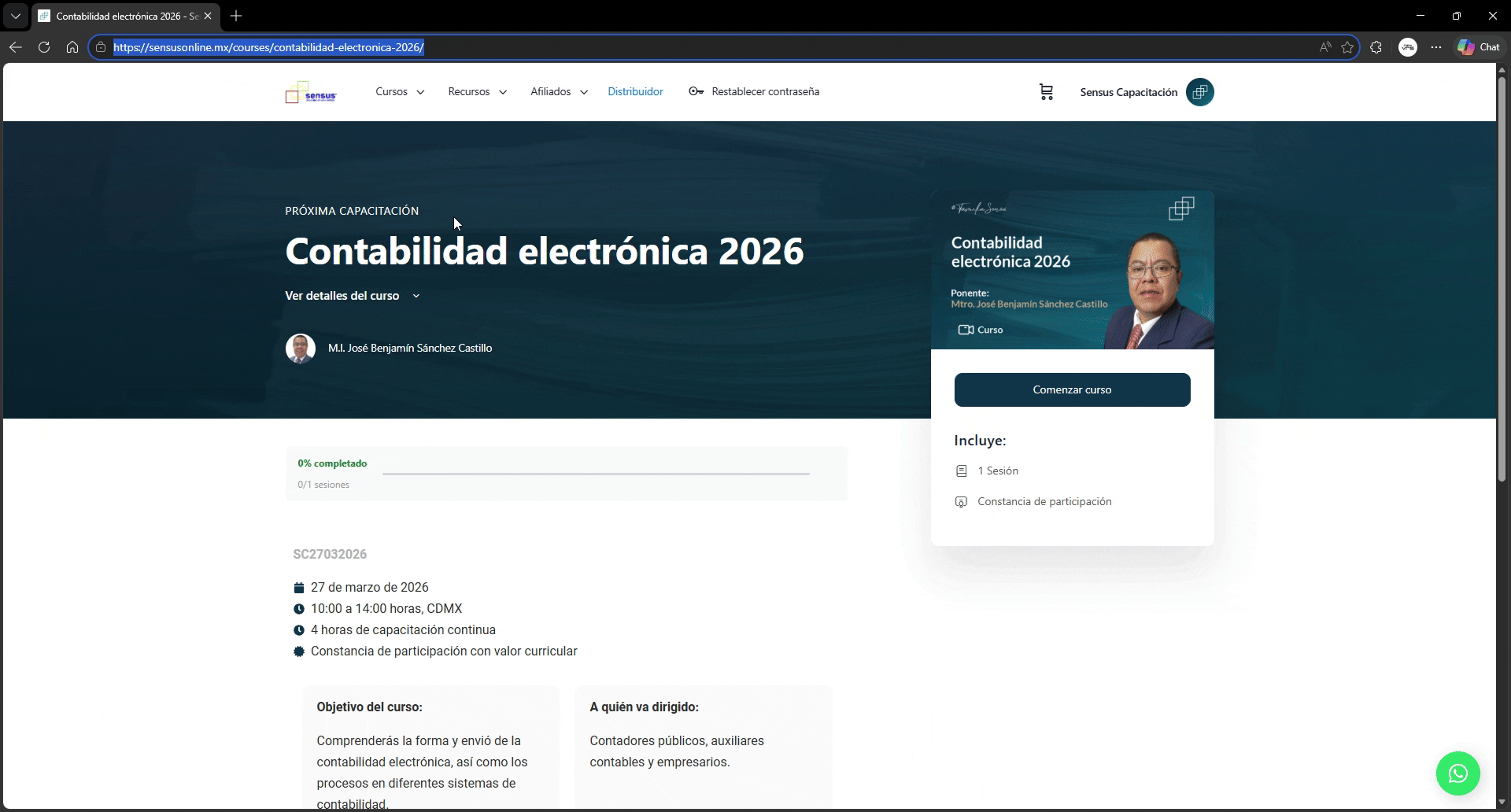 - Copia el enlace del curso desde la barra de direcciones.
